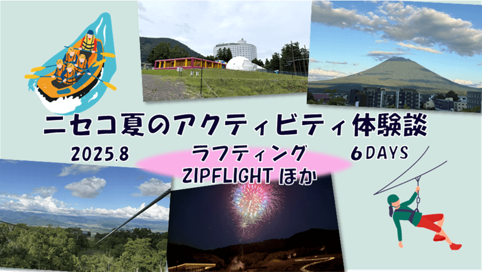 - ニセコ夏のアクティビティ体験談|ラフティング・ZIPFLIGHT ほか北海道で夏のアクティビティを満喫したい!ニセコなら間違いなし!最も混雑期の1つである夏のお盆、2025年8月。4つのアクティビティの体験レビューです。 ①ラフティング②ツリートレッキング③HANAZONO ZIPFLIGHT④ニセコピュアニセコHANAZONOリゾートにて①...